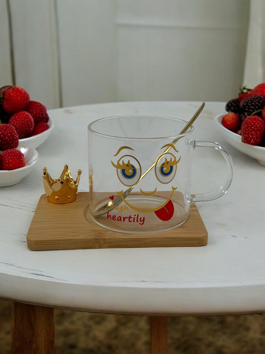 Ahşap İskeleli Kaşıklı Cam Gülenyüz Kupa Bardak