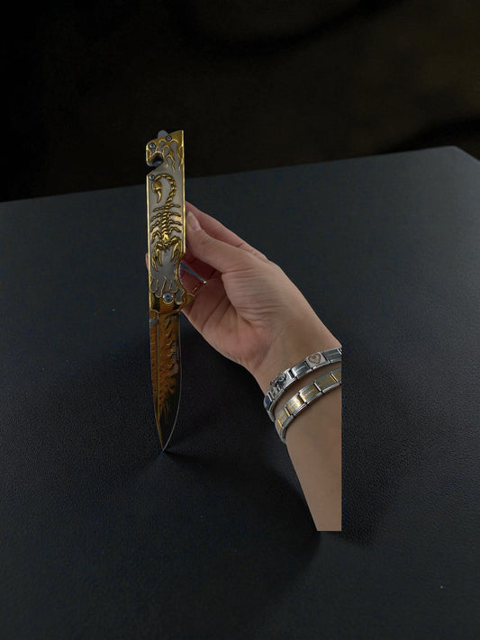 Altın Renk Akrep Desenli Katlanır Çakı