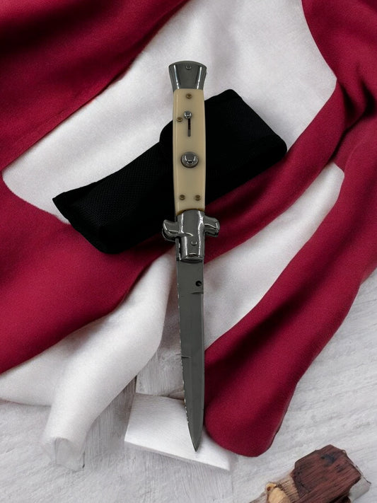 Orjinal Lux Tam Otomatik İtalyan Sustalı Çakı Krem - Gümüş 2210