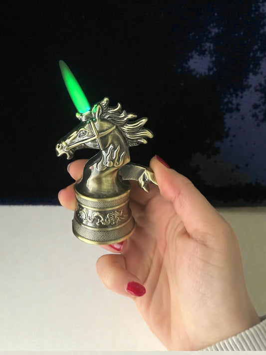 At Figürlü Renkli Alevli Pürmüzlü Çakmak