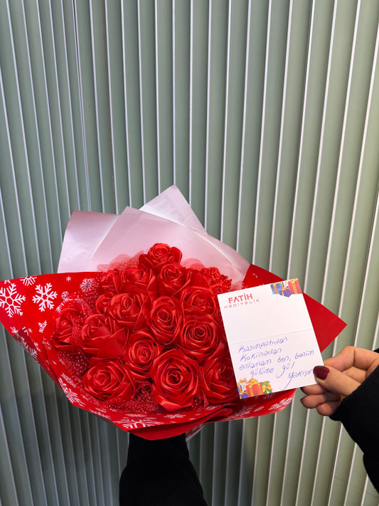 El Yapımı Kumaş Solmayan Gül Buketi