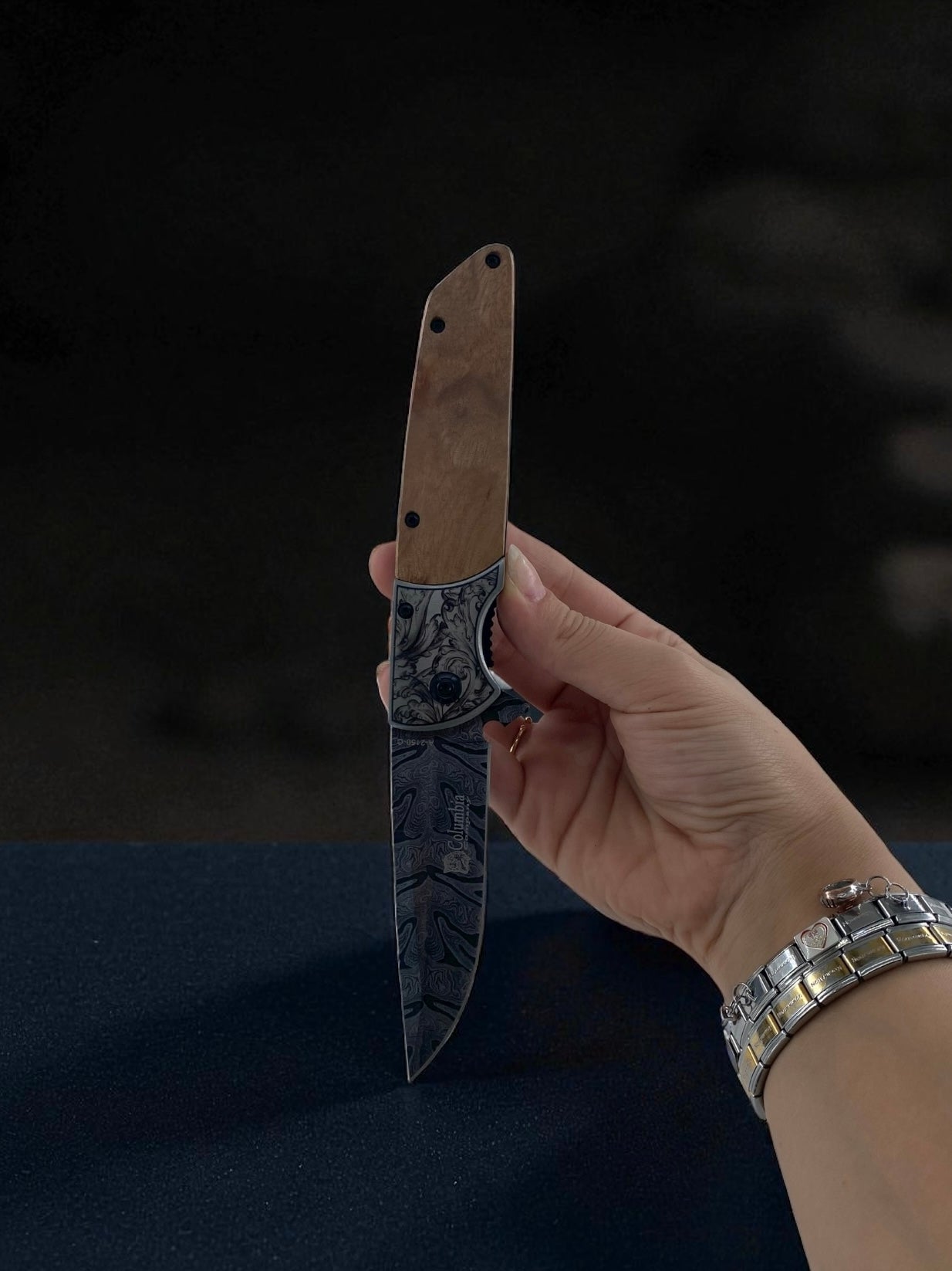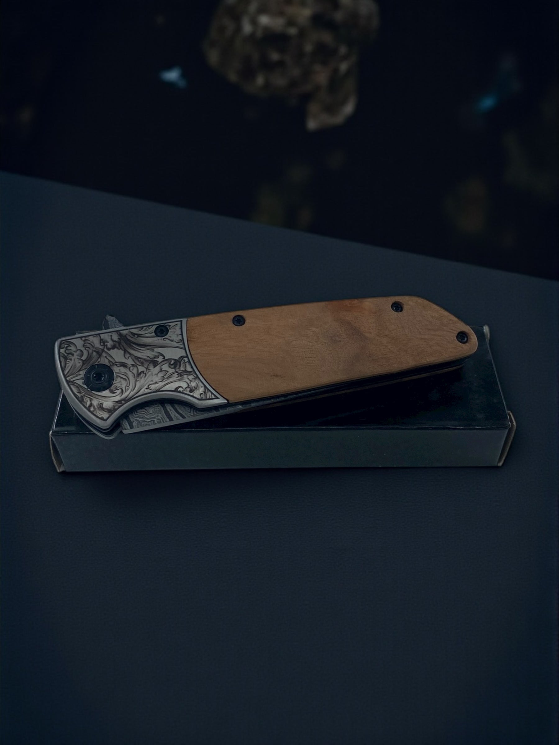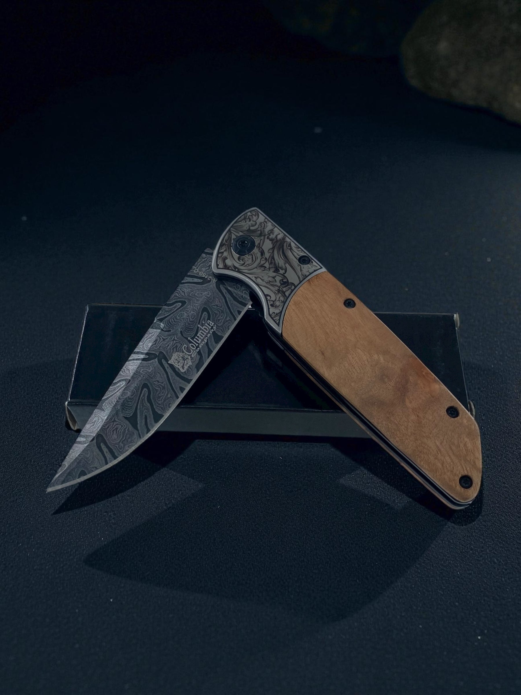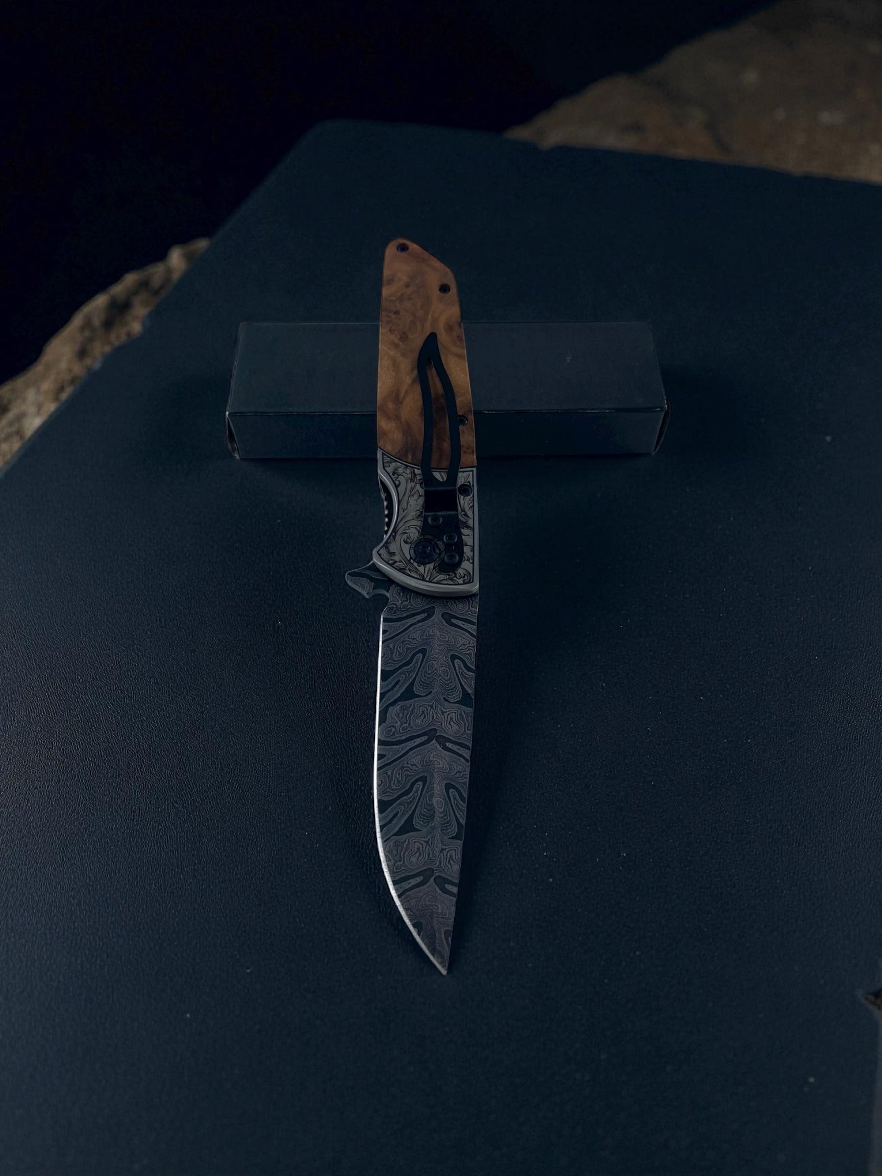 İşlemeli Damascus Ahşap Çakı