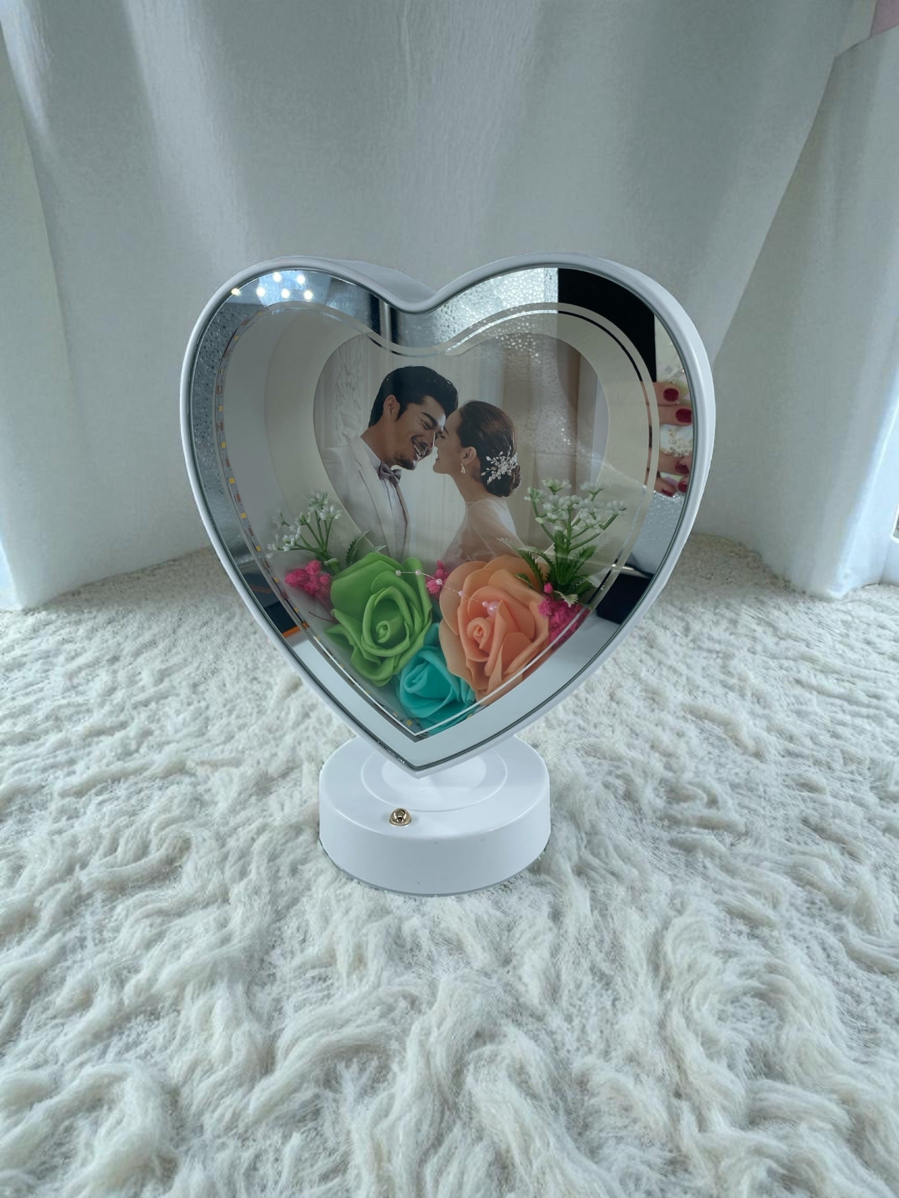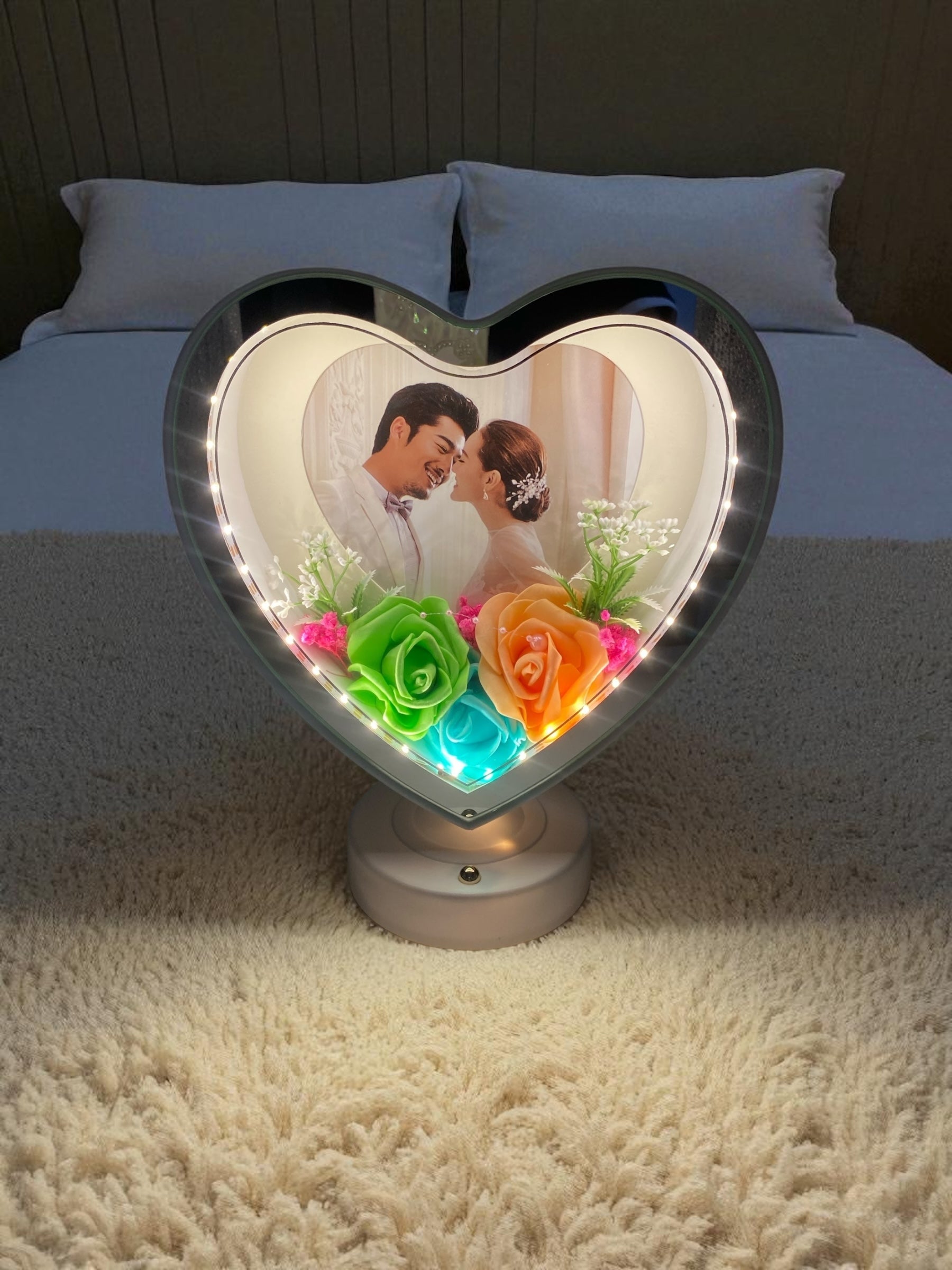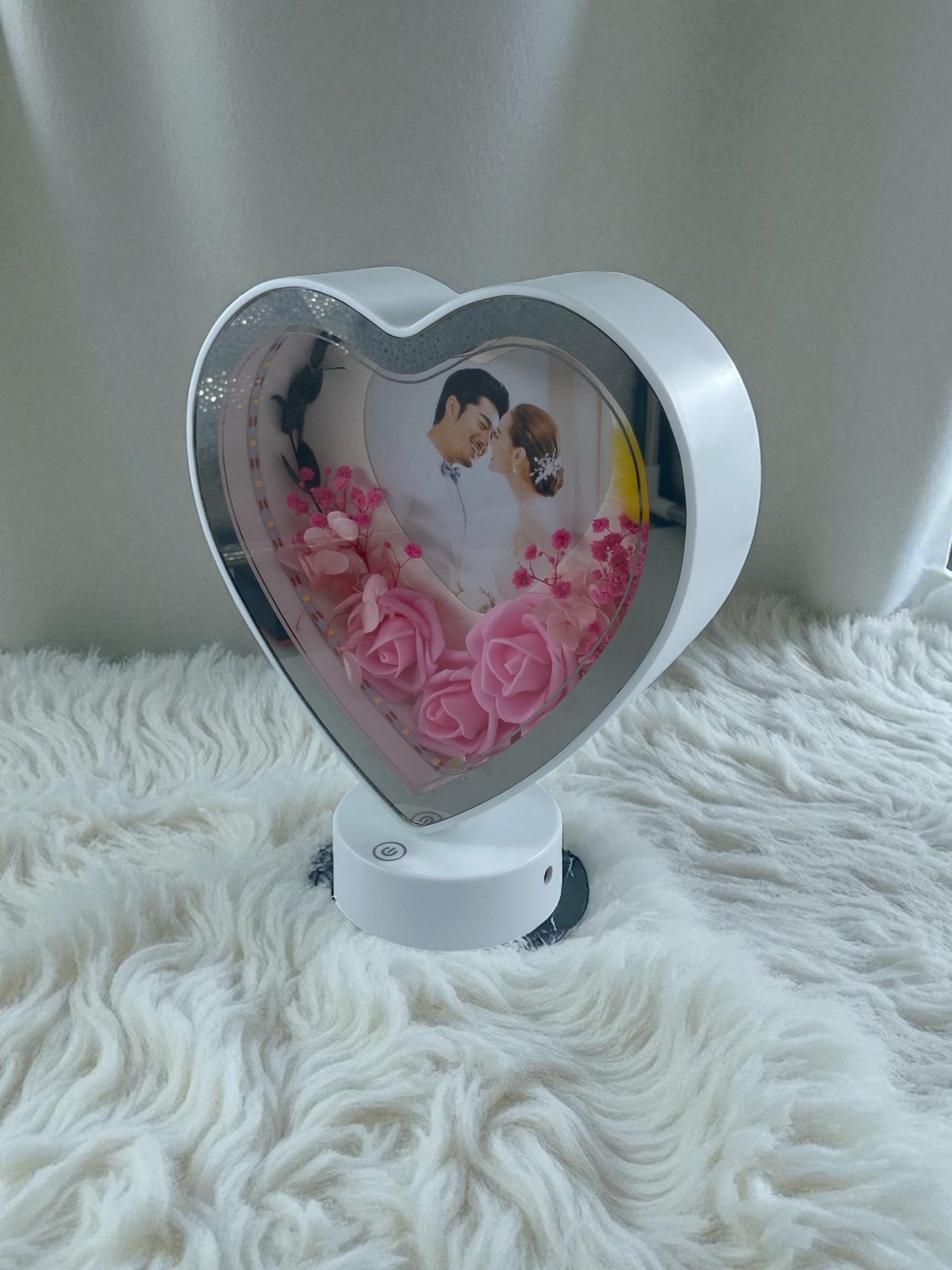 Işıklı Çiçekli Kalp Fotoğraf Çerçevesi