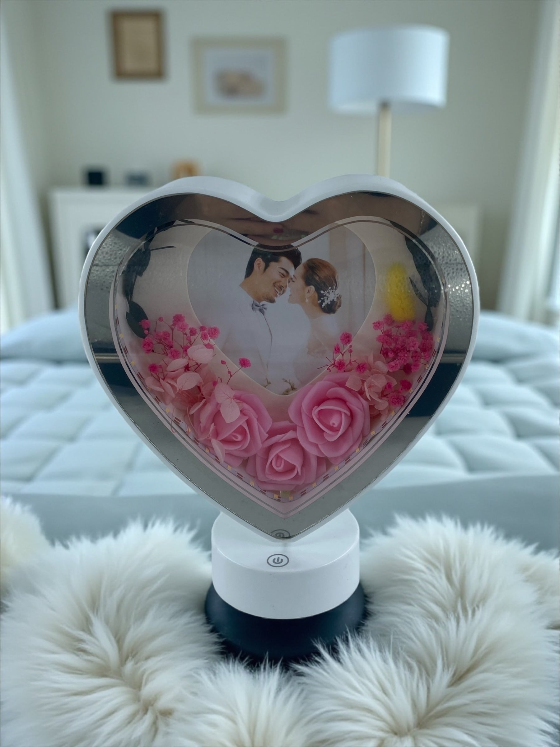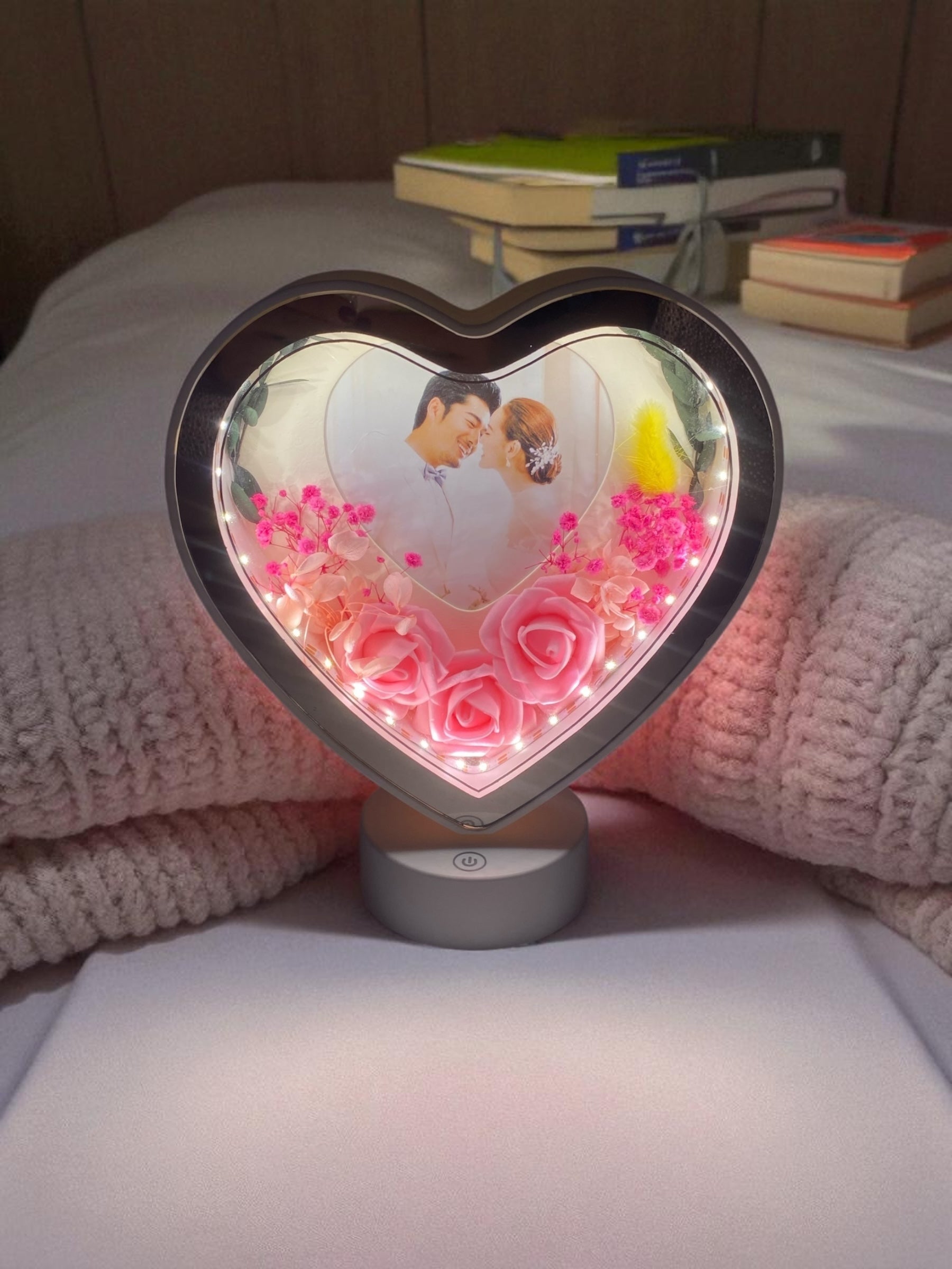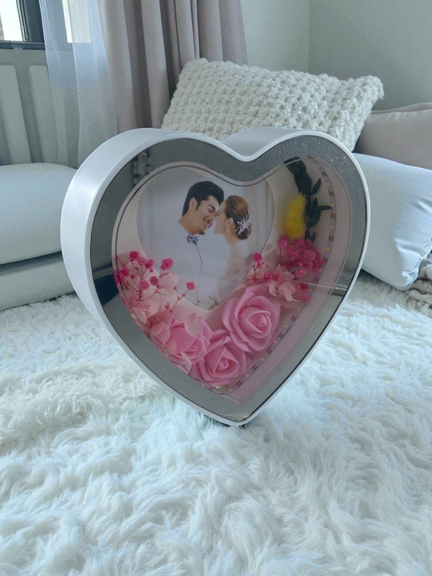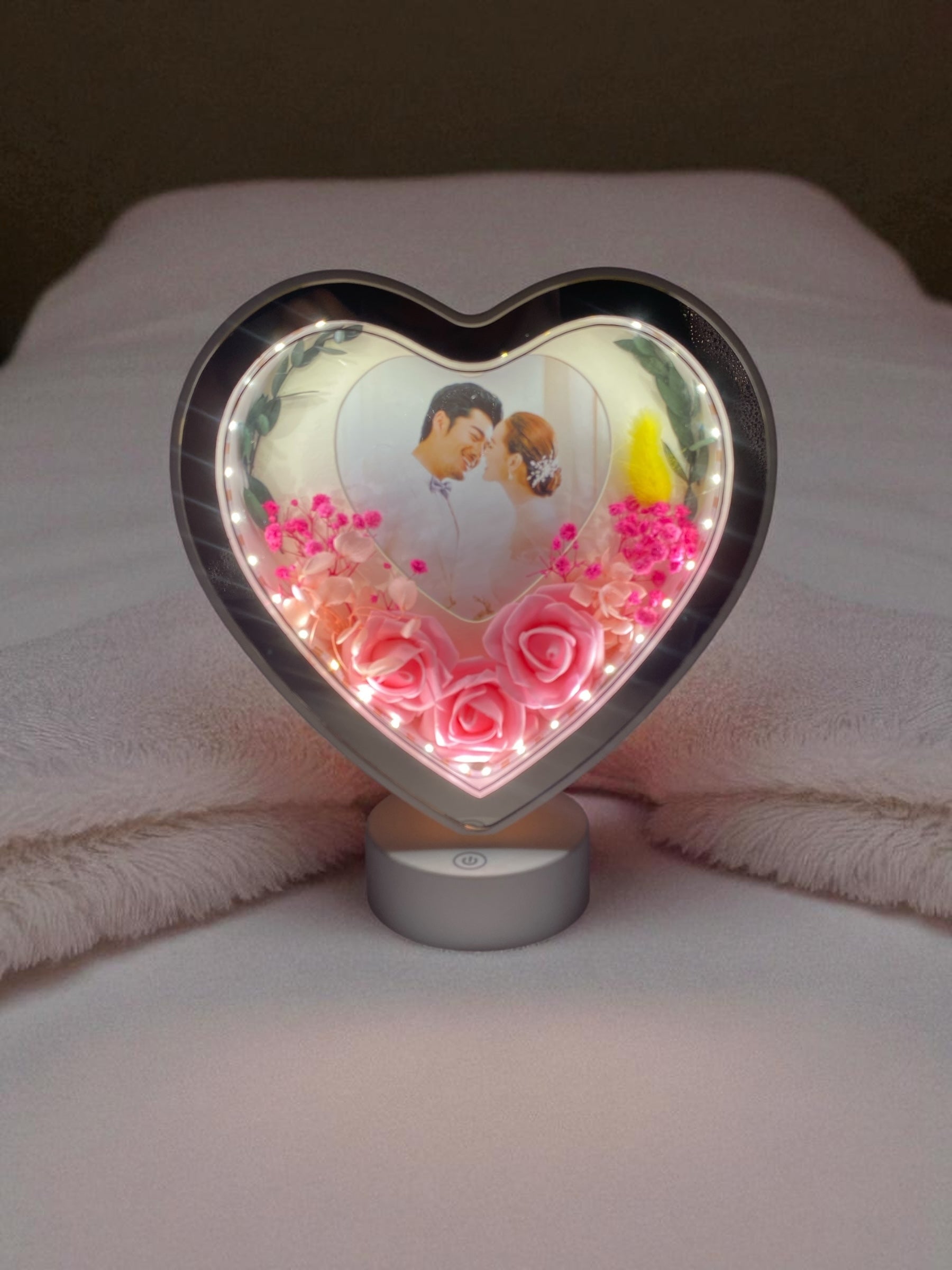 Işıklı Çiçekli Kalp Fotoğraf Çerçevesi