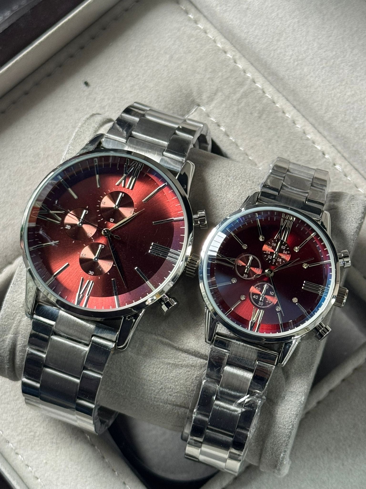 Kişiye Özel Kordonu İsim Yazılır Çelik Çift Saati Bordo Gümüş