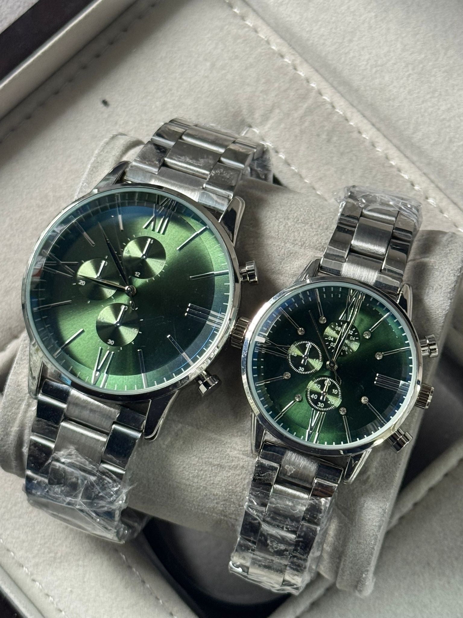 Kişiye Özel Kordonu İsim Yazılır Çelik Çift Saati Yeşil Gümüş