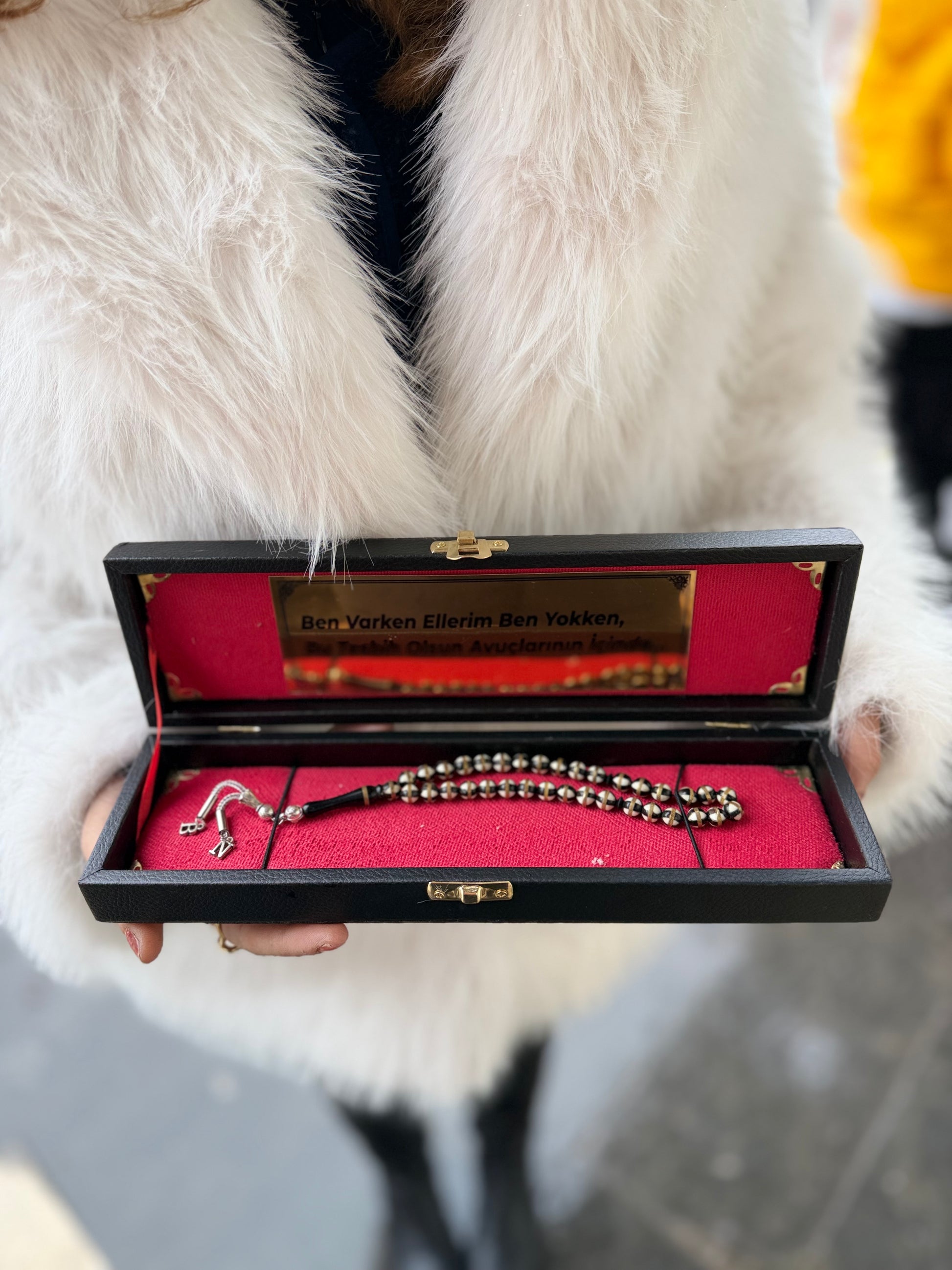 Özel Kutulu Kişiye Özel İsimli ve Harf Ucu Takılabilir Oltu Tesbih